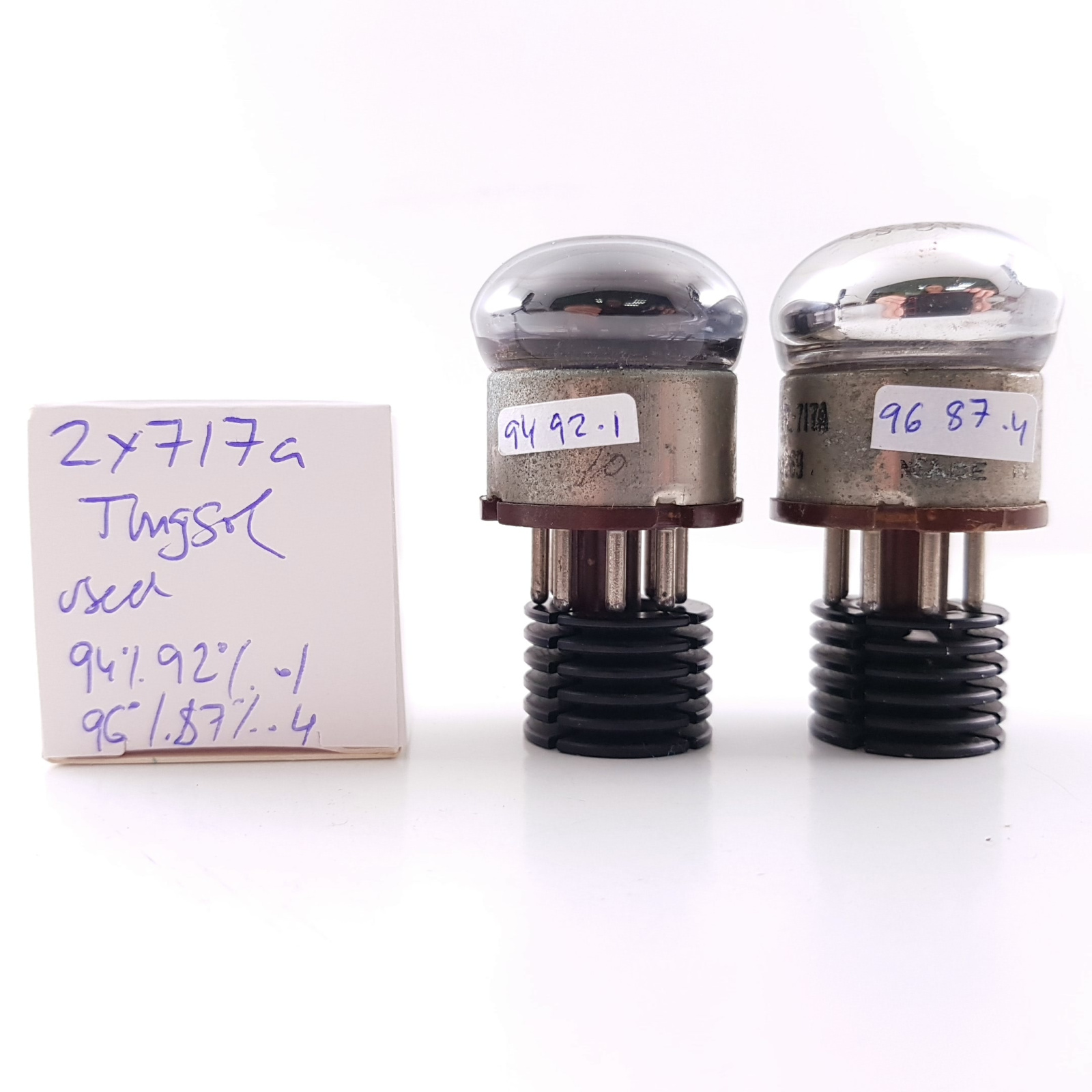 2 X 717A TUNGSOL TUBE. BLACK PLATES. USED PAIR.
